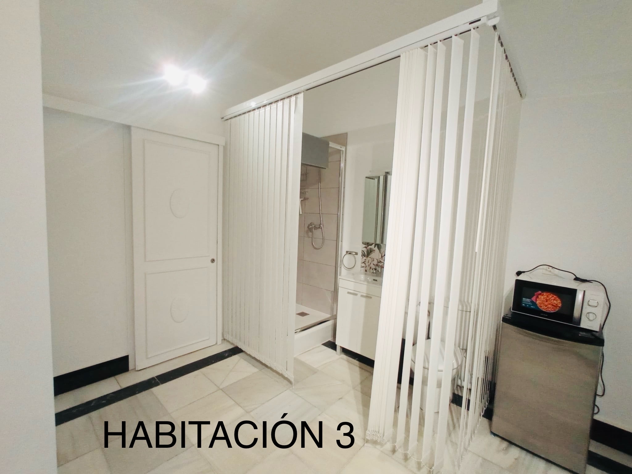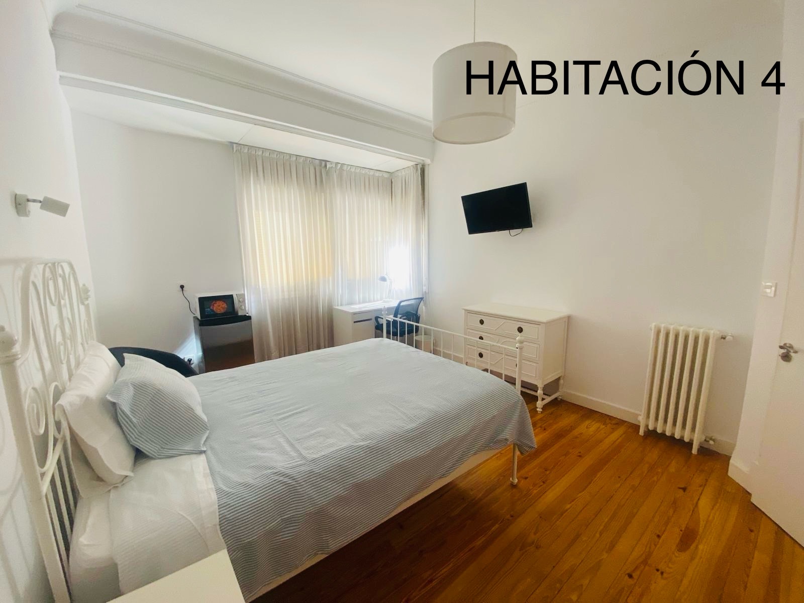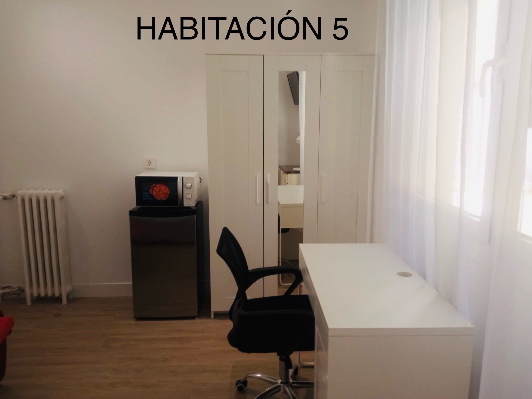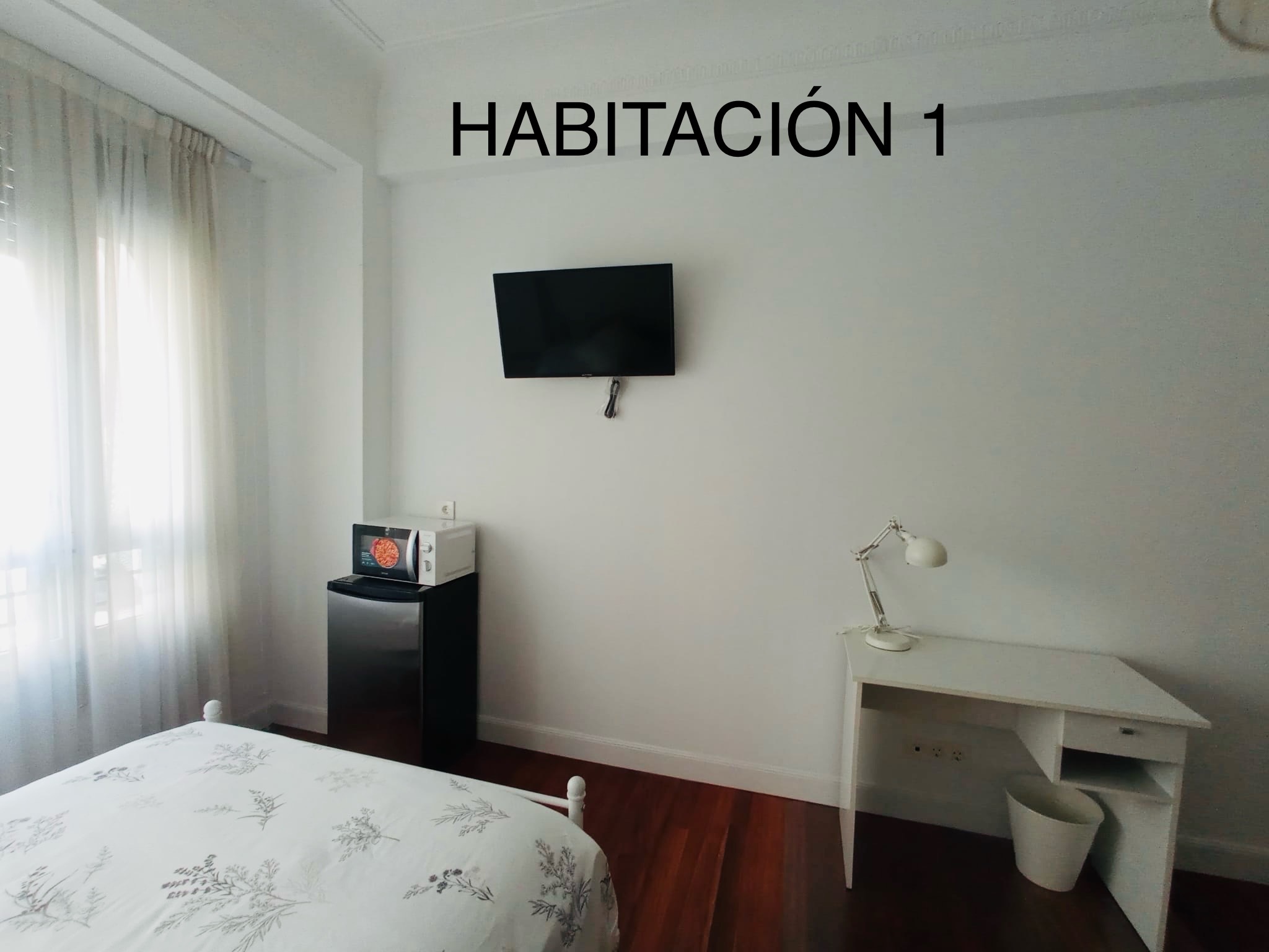 Todas las habitaciones disponen de: Cama de 140×200, baño, microondas, nevera, armario, mesa
