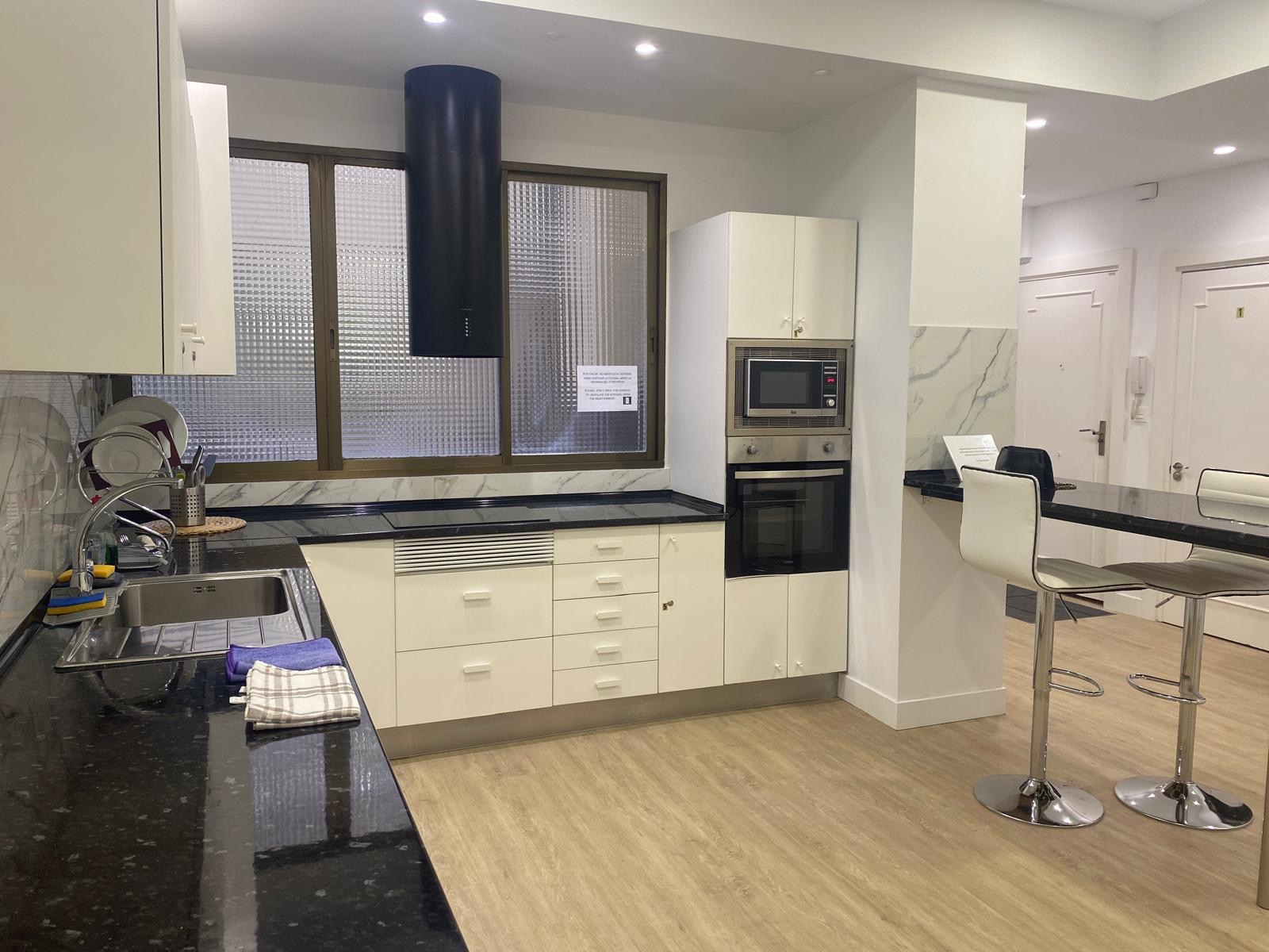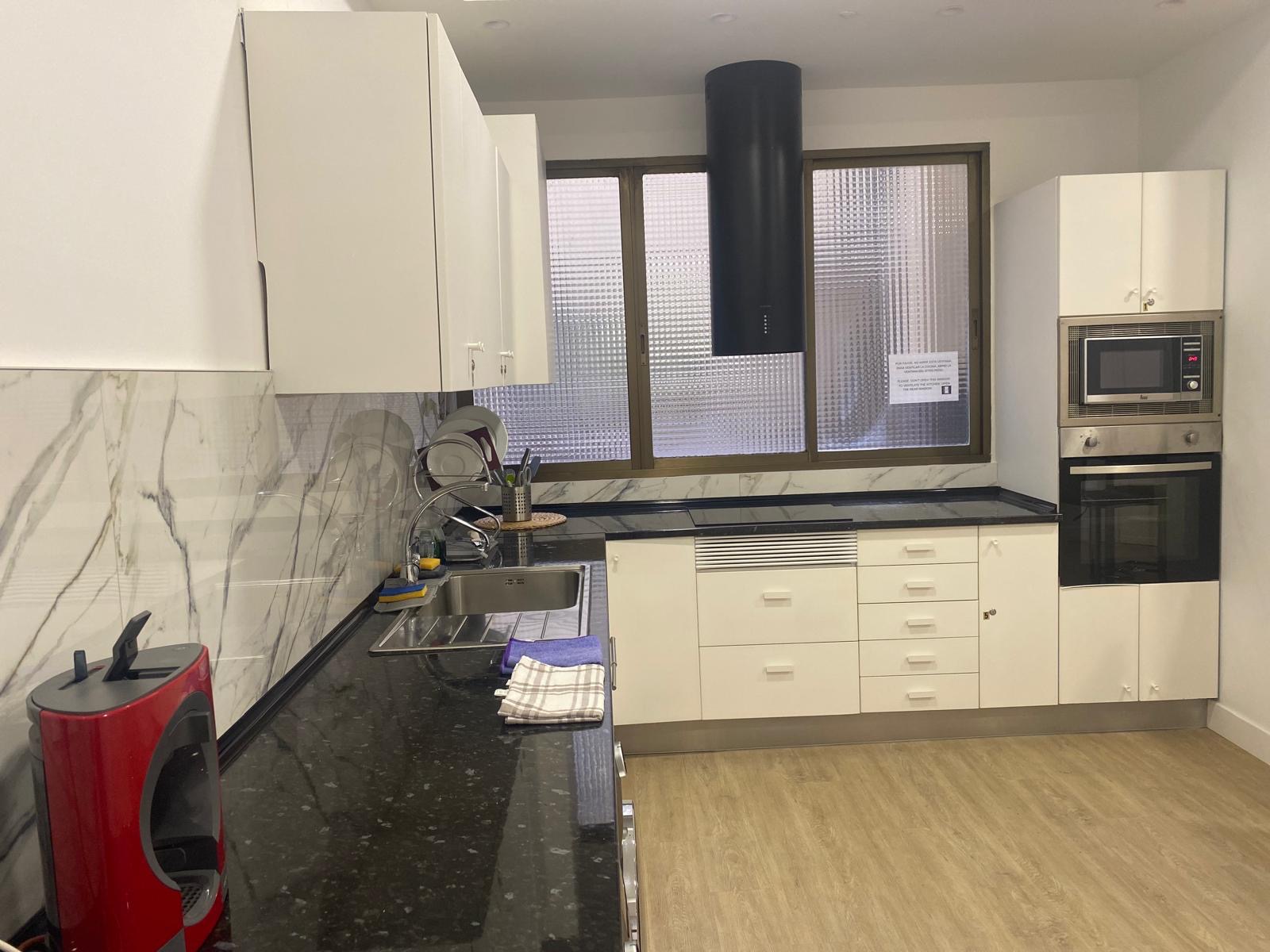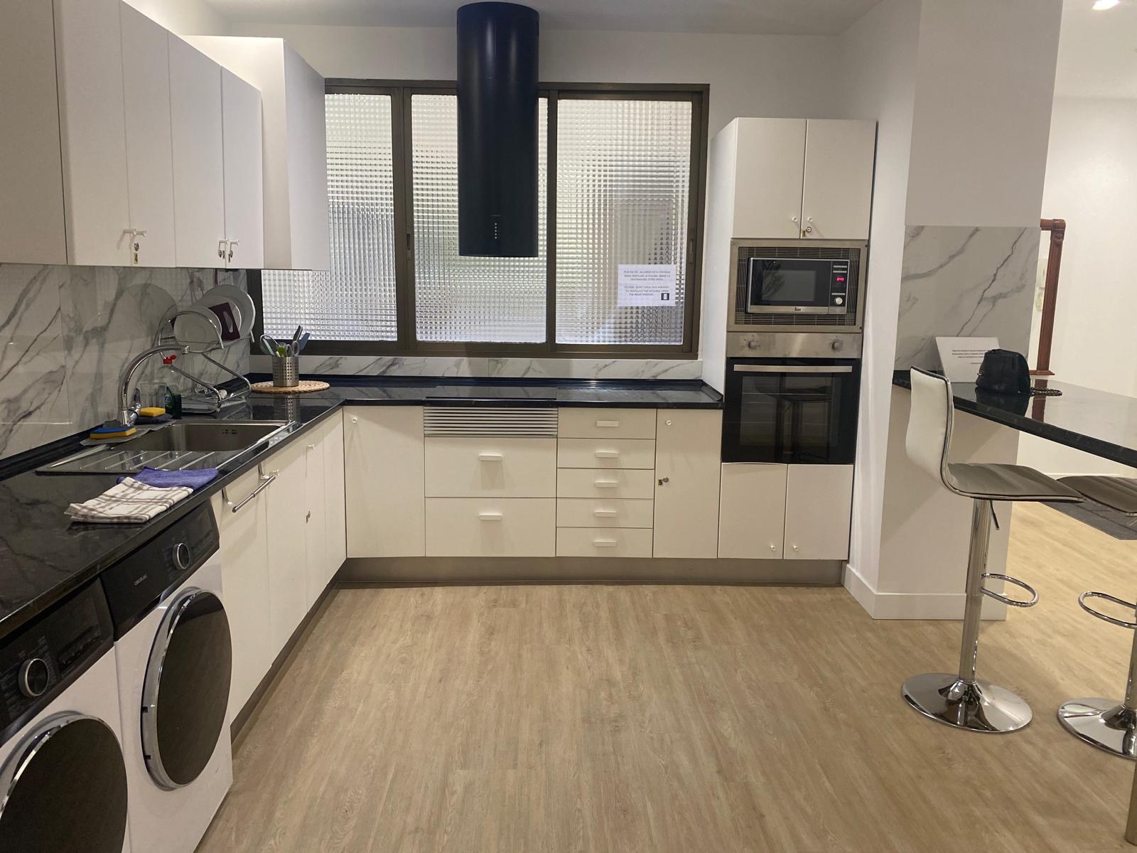En la cocina hay taquillas para cada una de las habitaciones.